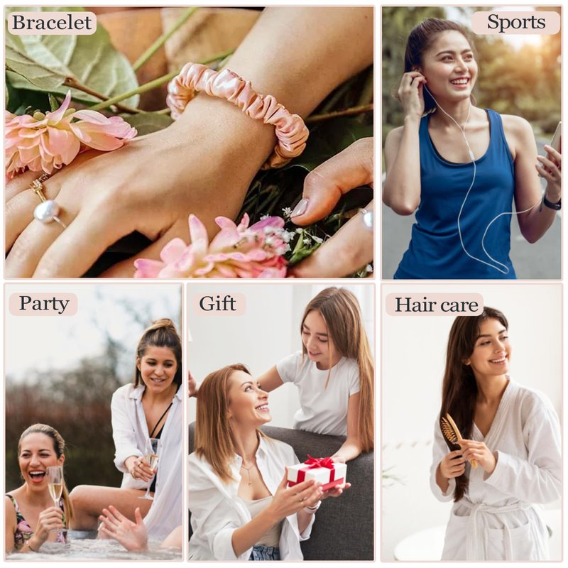 - đăVersatile Hair TiesăNot only are these satin hair ties perfect for bridesmaids, but they also make great hair accessories for everyday wear, bachelorette party, and bridal shower. Using silk scrunchie as a bracelet is also a good match at theme parties