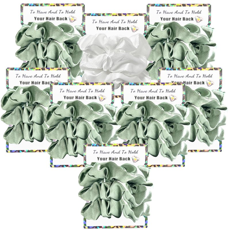 Banugo Bridesmaid Scrunchies, Bachelorette Party Favors, 24Pcs Satin Hair Ties for Women (Sage Green & White)