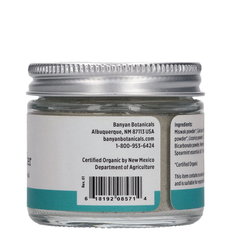 Banyan Botanicals Mint Cardamom Tooth Powder, Fluoride-Free, Ayurvedic, 0.75oz, 80+ Uses, Non GMO, Vegan, Activated Charcoal, Miswak