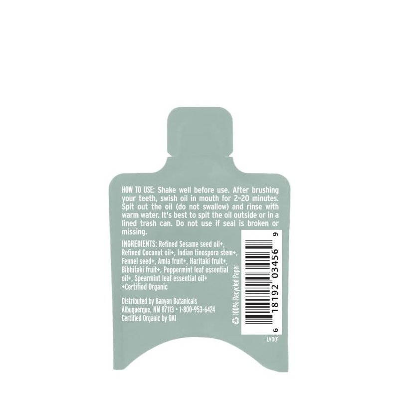 Banyan Botanicals Organic Daily Swish Mint Travel Packets - 12 ct - Ayurvedic Oil Pulling Mouthwash Oil for Oral Health - Coconut Oil Blend for Teeth and Gums