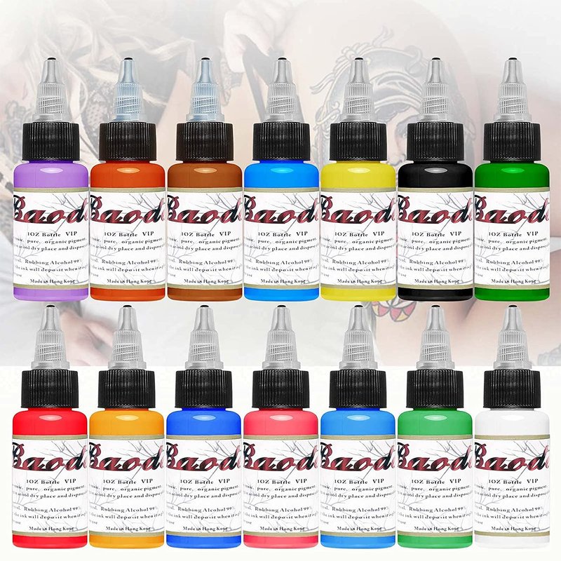 BAODELI 14Pcs Tattoo Ink Set - 1 oz 30ml/Bottle Tattoo Inks Pigment Kit for 3D Makeup Beauty Skin Body Art - 14 Colors
