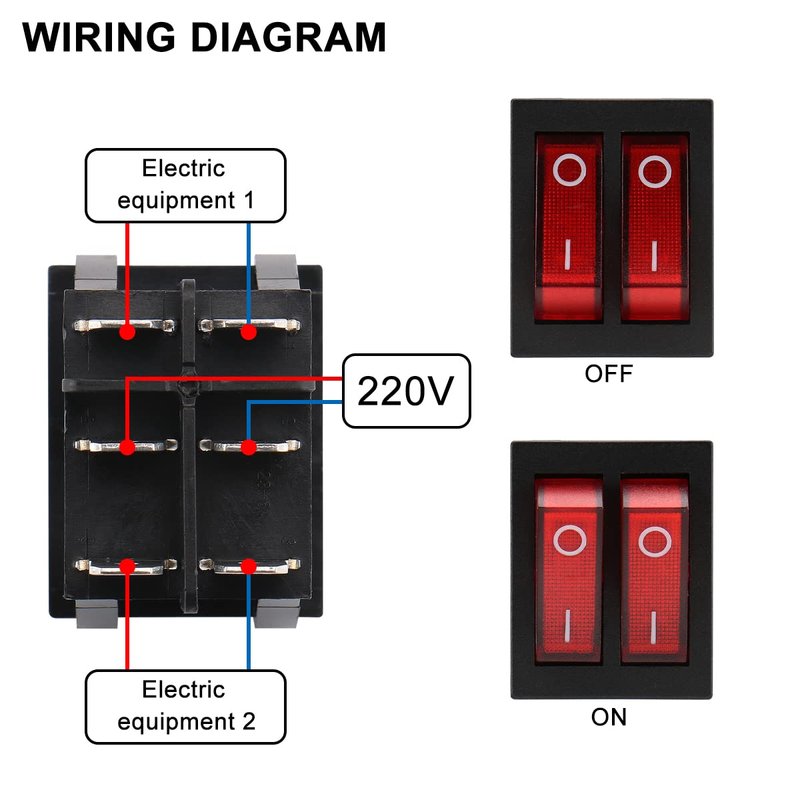 - Power: AC 250V, 16A; AC 125V, 16A; Terminals: 6 Pins; Pin Size: 10.7 x 6.4mm /0.4" x 0.3"(L*W)