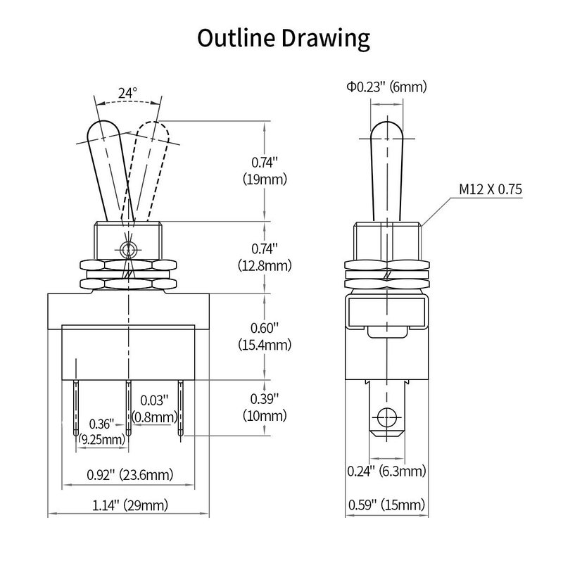- SPDT switch type ON-ON