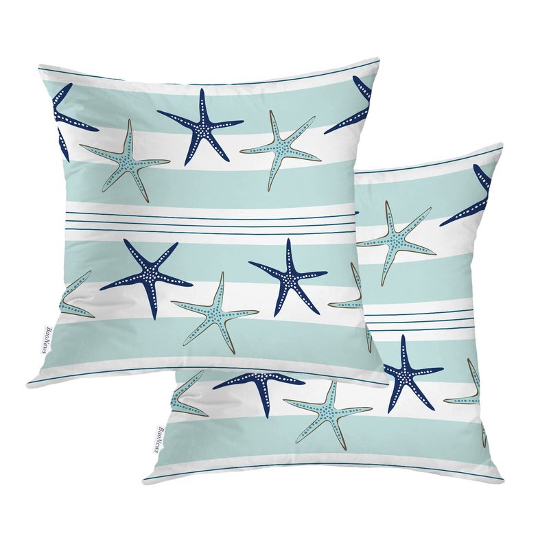 BaoNews Coastal Navy Blue Pillow Covers, Coastal Starfish Repeat Pattern Navy Turquoise Square 20 x 20 Inches Decorative Throw Pillow Covers Cotton Cushion for Sofa Bedroom Car, Blue 06, Set of 2