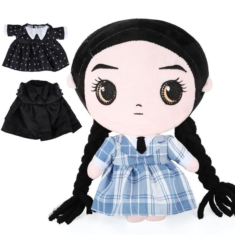 Bring home the spooktacular charm with our adorable plush doll set! Perfect for fans of the Family or as a quirky Halloween gift, this plush toy comes complete with 3 dress-up outfits for endless fun and creativity.