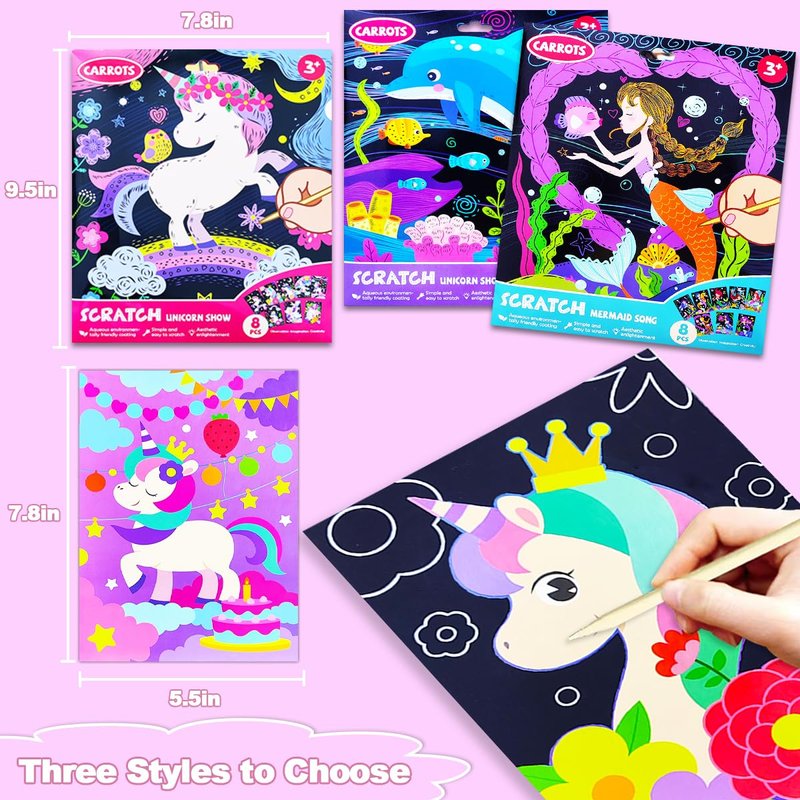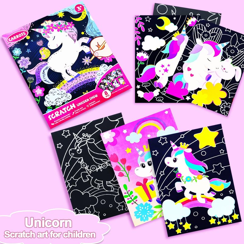 - ✍【Unicorn Scratch Art】This unicorn scratch art activity provides hours of creative fun and makes an ideal arts and crafts gift for kids aged 3 to 8 who love unicorns! The arts & crafts supplies is compact and perfect for all kinds of travel - road trips, flights, and train rides.