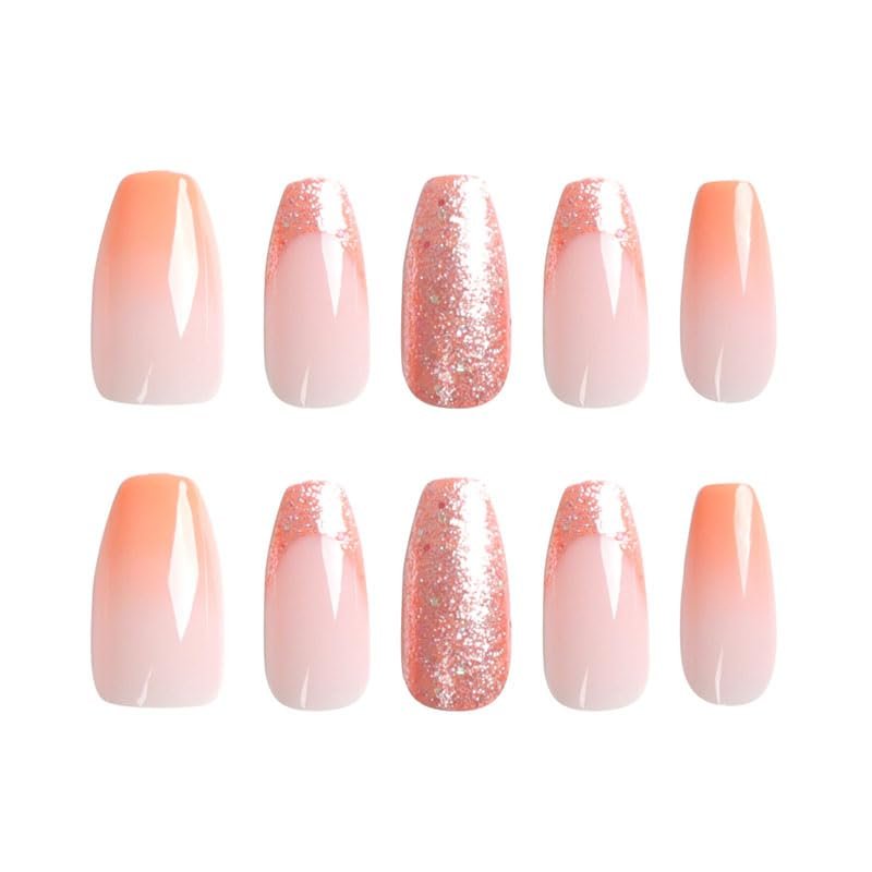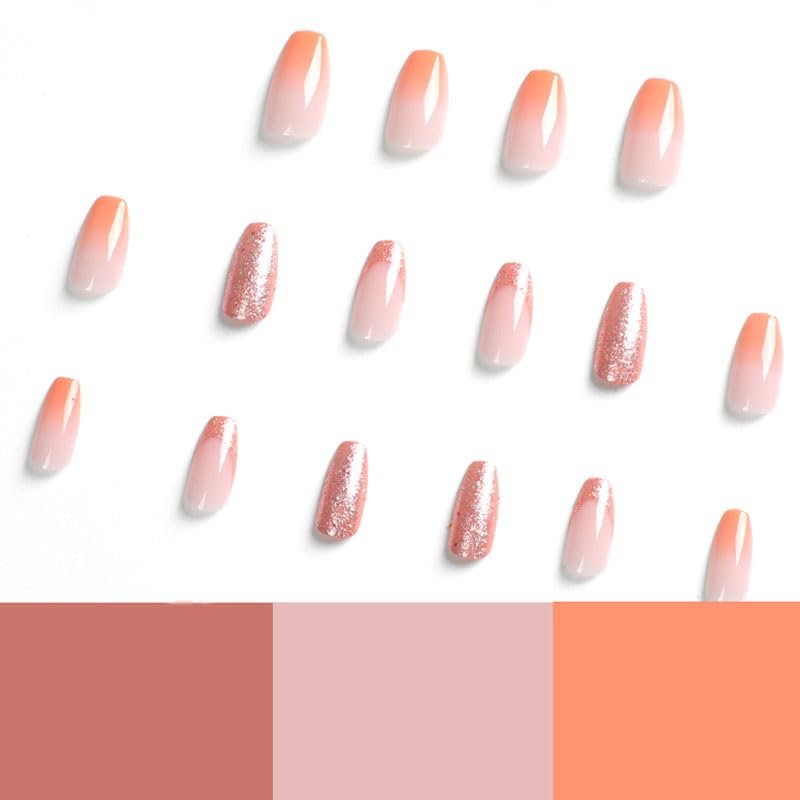 BAOYAALIN Orange Ombre Press on Nails Short Medium Coffin Fake Nails with Glitter Design Glue on Nails for Women Girls Acrylic Ballerina False Nails Stick on Nails Press on Nail for Wedding 24Pcs