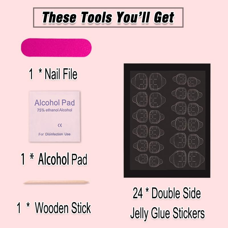 - Suggestions - Keep your nails clean and dry before applying medium square press on nails. The jelly stickers make nails reusable and easy to remove, but the durability of jelly gel is limited, so if you need it to last longer, we suggest you use nail glue
