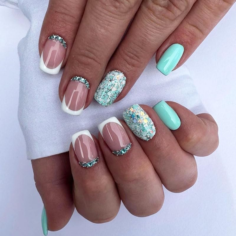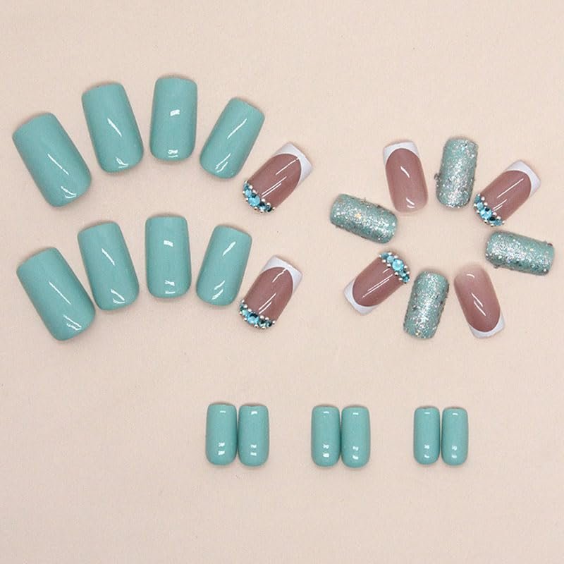 - About After Sales Guarantee - Due to the influence of lighting and shooting scenes, it is normal that there may be some errors between the short medium square press glue on nail with rhinestones glitter design you received and the picture. If you are not satisfied, please contact us in time, and we will provide free return service