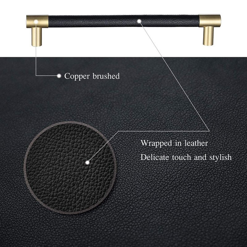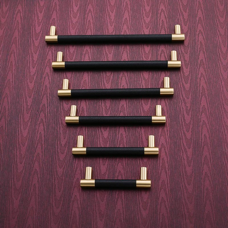 - Solid Brushed Pure Copper T Bar Cabinet Handles for cabinets, wardrobe, wine cabinet, locker.Wrapped in leather, delicate touch and stylish.Metal wiredrawing and never fade.