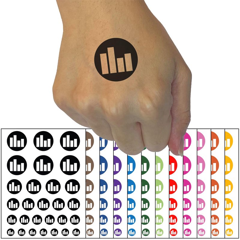 Bar Graph Icon in Circle Temporary Tattoo Water Resistant Fake Body Art Set Collection - Light Pink (One Sheet)