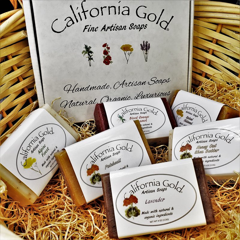 Bar Soap Gift Box Variety Pack From California Gold Artisan Soaps-Variety Pack-6 Bars- Lavender, Honey Oat Shea Butter, Patchouli, Blood Orange Bergamot, Alpine Forest, Spiced Oatmeal-Exfoliating Body Soap Bars for Men and Women-Cold Pressed Natural Soap