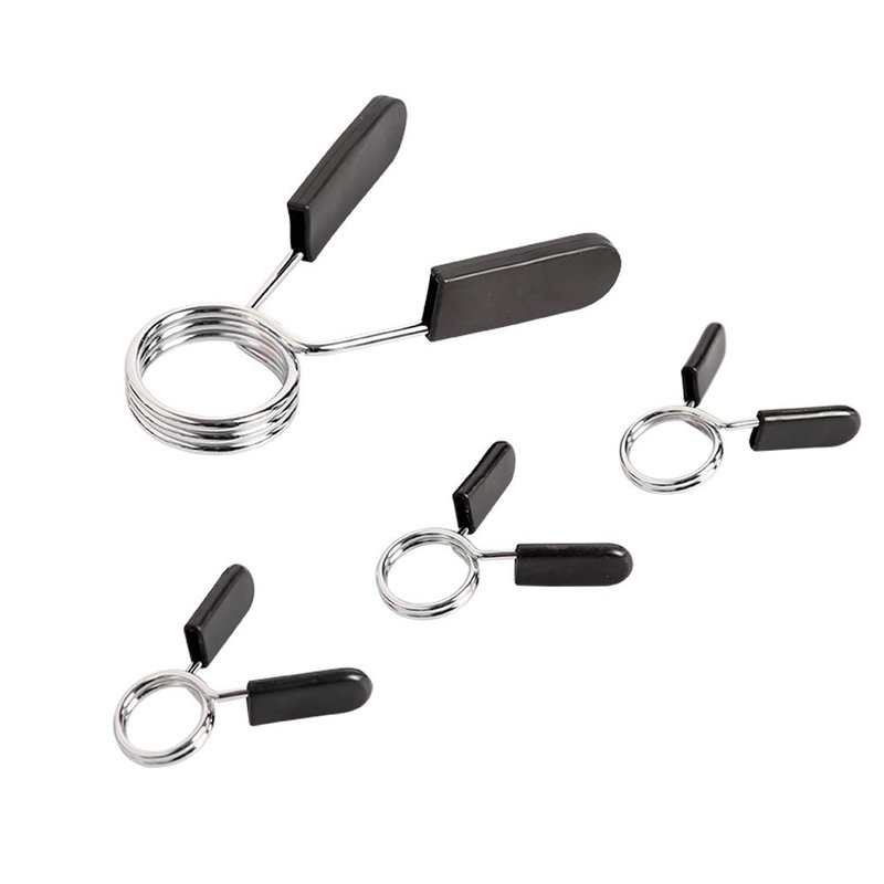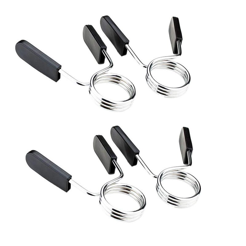 PACKAGES: 1 inch barbell clamps 2 Pairs / 4 Pack in total. Color:Silver+Black Material:ABS+Steel 【Note】:This spring collar is designed for 25 mm (EXACTLY 1 inch) only. Please measure your bar prior purchase. Don't hesitate to contact us for help if the spring collar can't fit