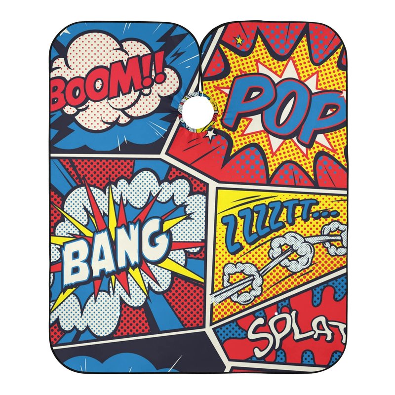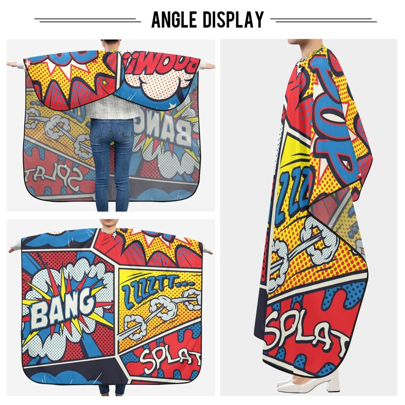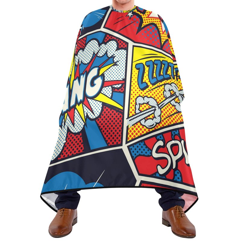 Barber Cape Salon Cape Hairdressing Apron Haircutting Waterproof Retro Pop Art Comics for Adults Men Clients with designs Adjustable Neck Closure