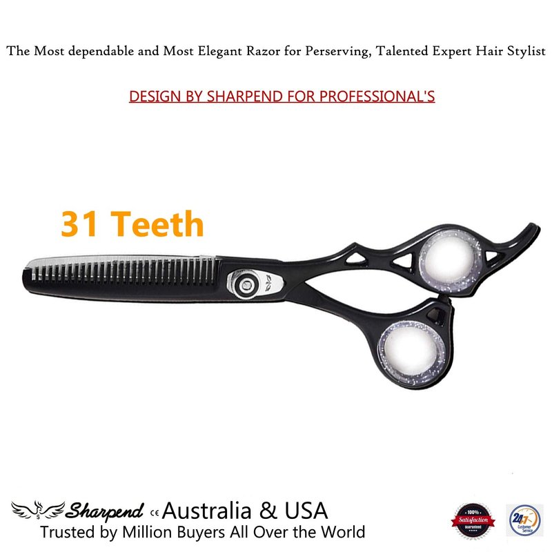 - Professional Stainless Steel Scissors. The edge line of the blade is evenly polished, using the convex arc design to increase the thrust of Hair scissors, to make the cutting more smooth and stable. With meticulously crafted clear tip of tooth, the thinning scissors are sharp and do not clip the hair.