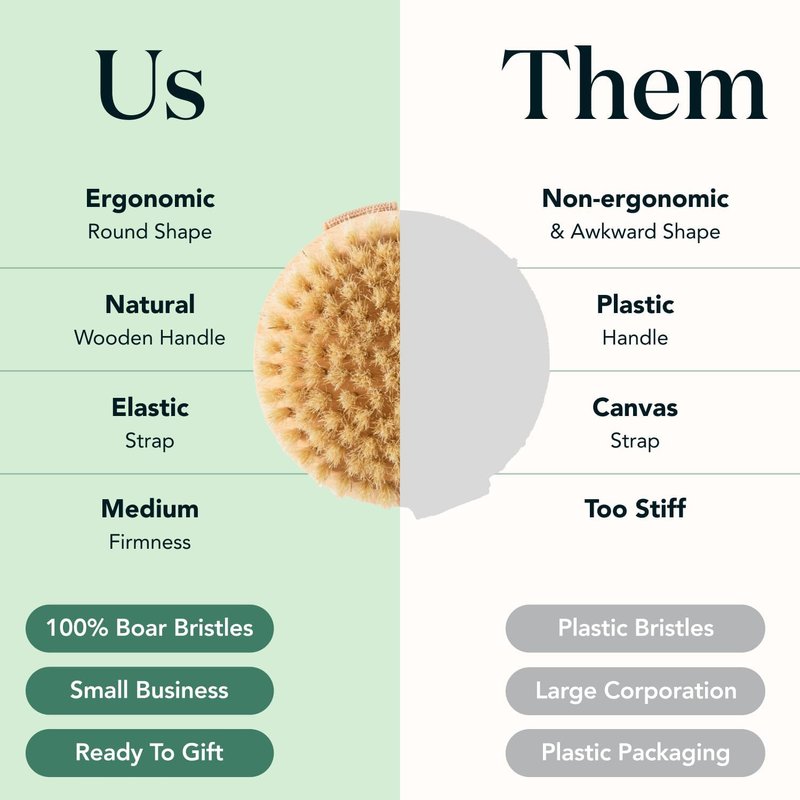 - MEDIUM FIRMNESS BRISTLES - This bath brush is made from 100% boar bristles and a sustainable FSC-certified beechwood handle. This body scrubber exfoliator is the perfect cellulite brush dry brush for lymphatic drainage that has soft yet firm bristles that are gentle on the skin. Just use this shower exfoliator brush all over your body working your way to the heart in a circular motion for the best results.