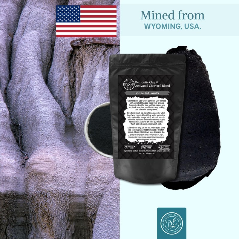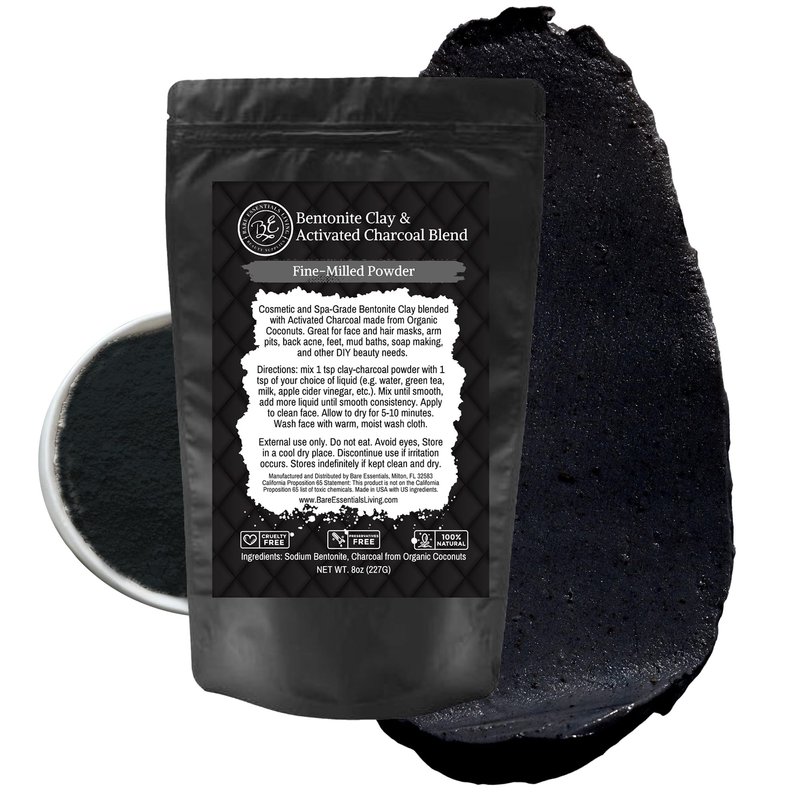 Bare Essentials Living - Bentonite Clay Powder and Activated Charcoal Powder Blend (8oz) Great for Charcoal Face Mask, Facial, Hair Mud Mask, DIY Bentonite Clay Toothpaste, & Charcoal for Soap Making