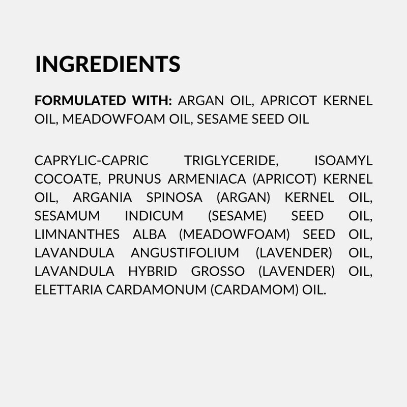 - Formulated with Argan Oil, Apricot Kernel Oil, Meadowfoam Oil and Sesame Seed Oil