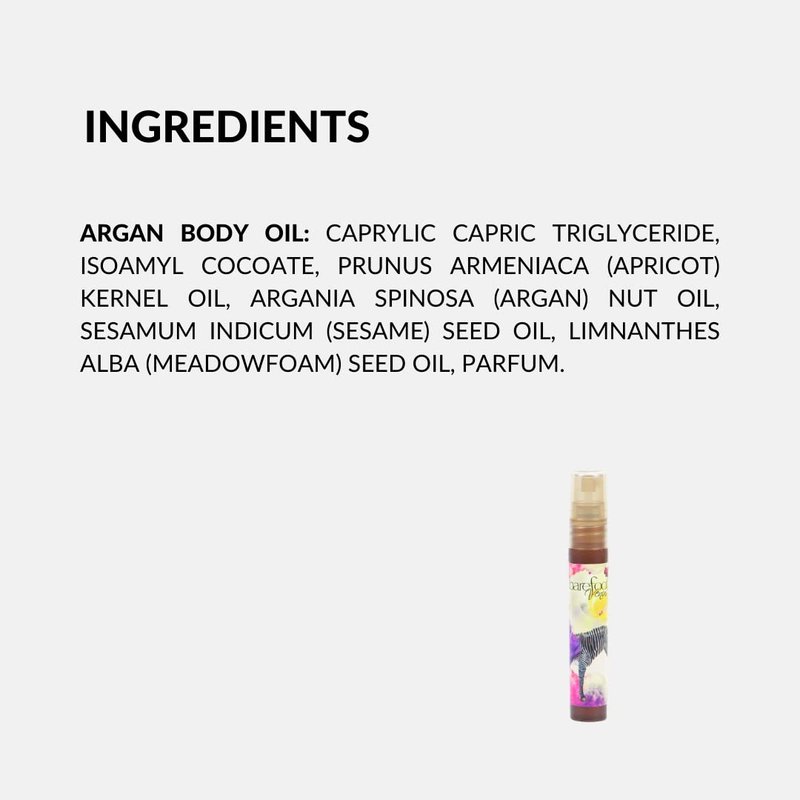 Black Coconut Argan Body Oil 8 ml, apply on instant moisture and bid dry, water-starved skin a fond farewell. Super-hydrating Argan oil, Apricot kernel oil and moisture giving Meadow foam oil cloak skin in silky-smoothness.
