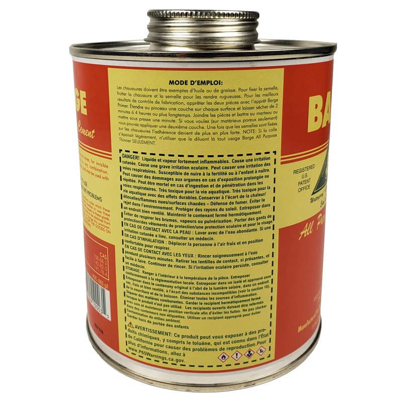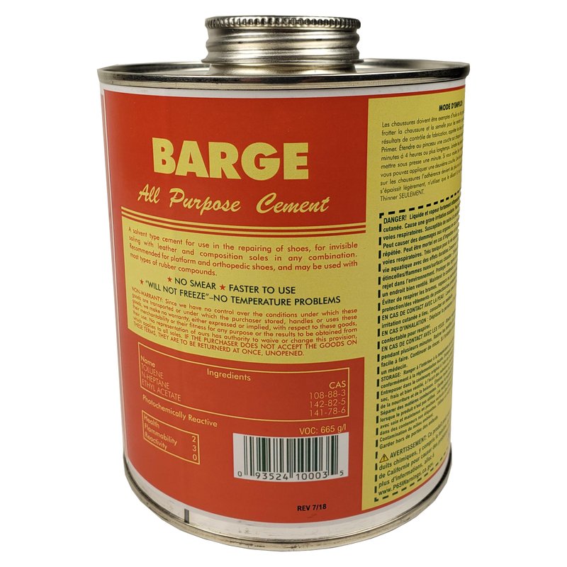 - Barge All Purpose Cement is a professional strength glue (adhesive) that can be used on leather, rubber and vinyl