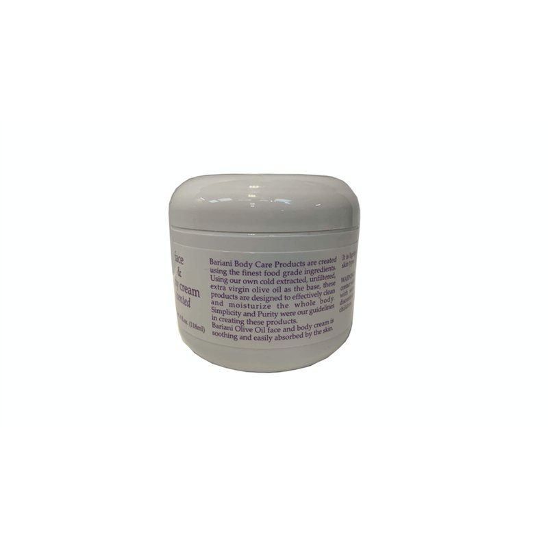 Bariani Olive Oil Company Myrrth Fragrance Face & Body Cream Bariani Body Care Products are created using the finest food grade ingredients. Using our own cold extracted, unfiltered, extra virgin olive oil as the base, these products are designed to effectively clean and moisturize the whole body. Simplicity and purity were our guidelines in creating these products. Bariani Olive Oil face and body cream is soothing and easily absorbed by the skin. It is available both scented and unscented and is ideal for all skin types. Food for the skin. Fragrance Free Ingredients: Extra Virgin Olive Oil, Bees Wax, Distilled Water and myrrh 4 fl oz (118ml).