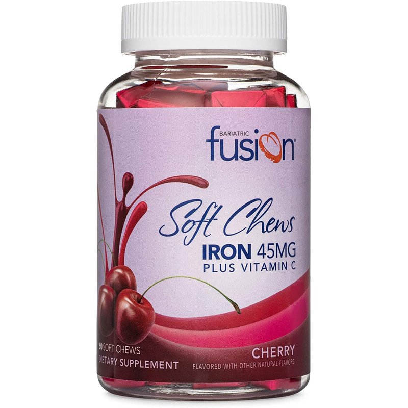 Bariatric Fusion Iron Soft Chew with Vitamin C | Cherry Flavored | Chewy Vitamin for Bariatric Patients | Gluten Free | Iron Supplement for Women and Men | 60 Count | 2 Month Supply