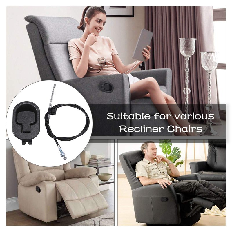 - 【Latest Design】: Added spring to recliner cable end for faster reset during use. Replaced metal clip with two screws on top of cable for stronger, more flexible connection to handle. Easily adjust screws on cable top to change exposed length and perfectly fit furniture.