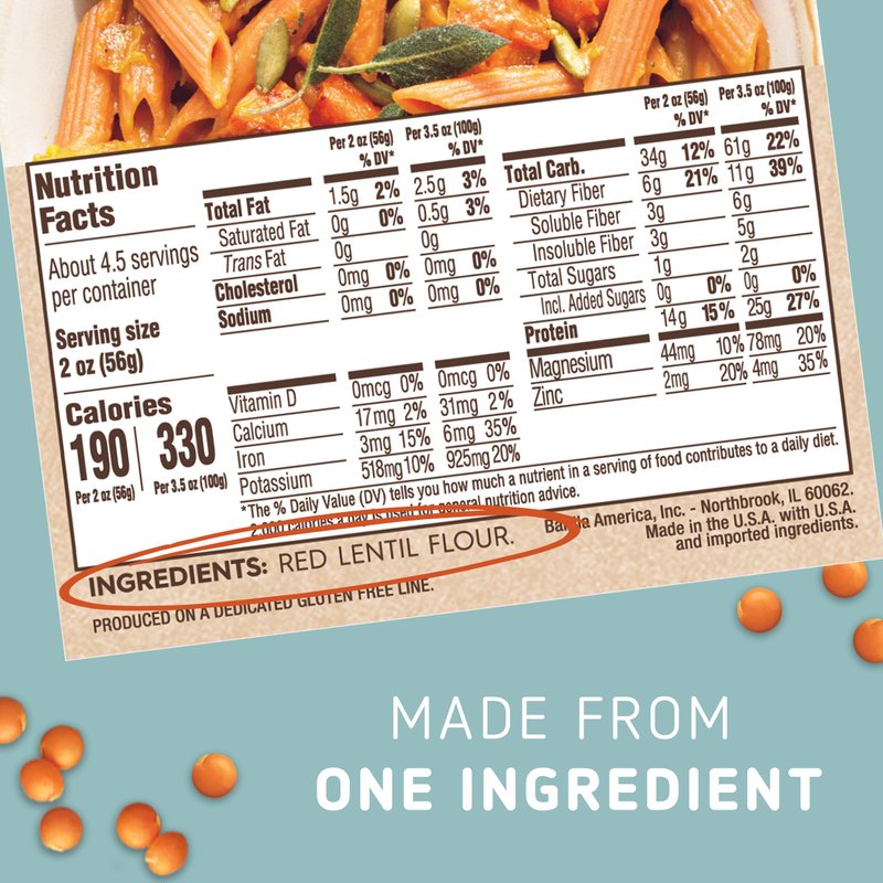 - Contains 25g protein and 11g fiber per 3.5-ounce serving, all with delicious red lentil flavor that pairs well with tomato-based pasta sauce, pesto sauce or other pasta sauces