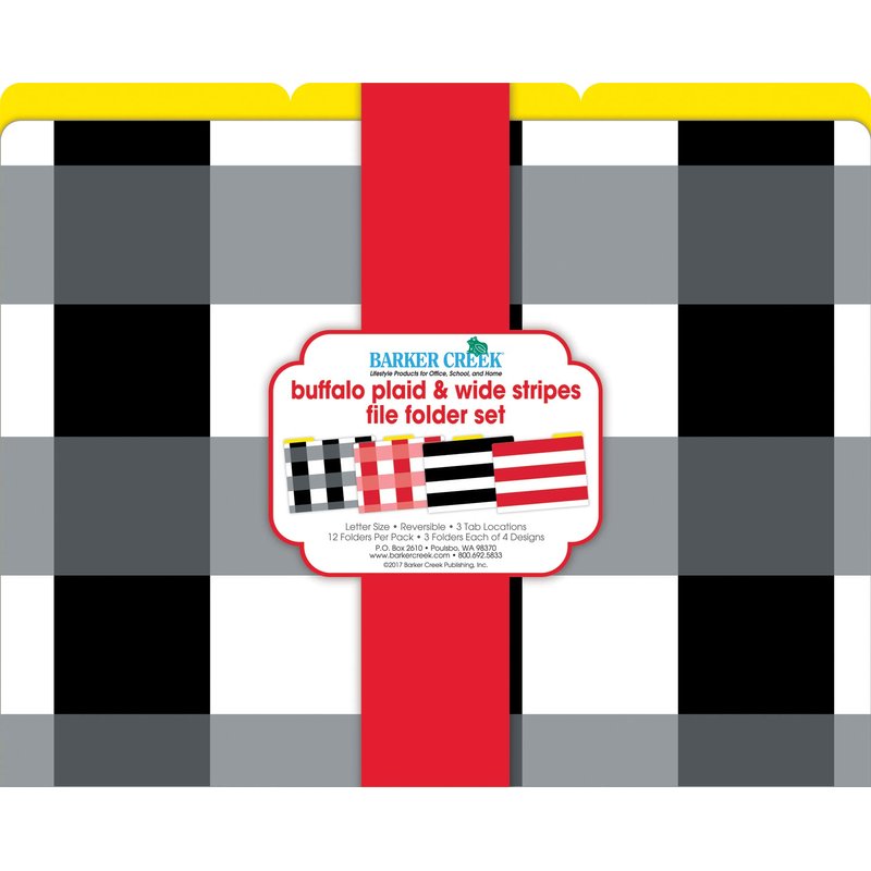 - Dimension Details: The set includes 12 letter-size file folders. They are fully reversible with a fun pattern on one side and vibrant yellow on the other. Coordinating products are available. Search: Barker Creek Buffalo Plaid & Wide Stripes.
