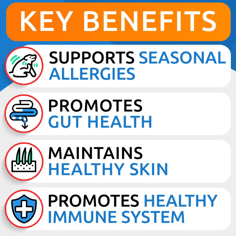 - One Stop Allergy Aid - prevent environmental pollutants, food and seasonal allergies, and ease symptoms like paw licking, itching, chewing & scratching, irritation, bald spots, rashes and hot spots