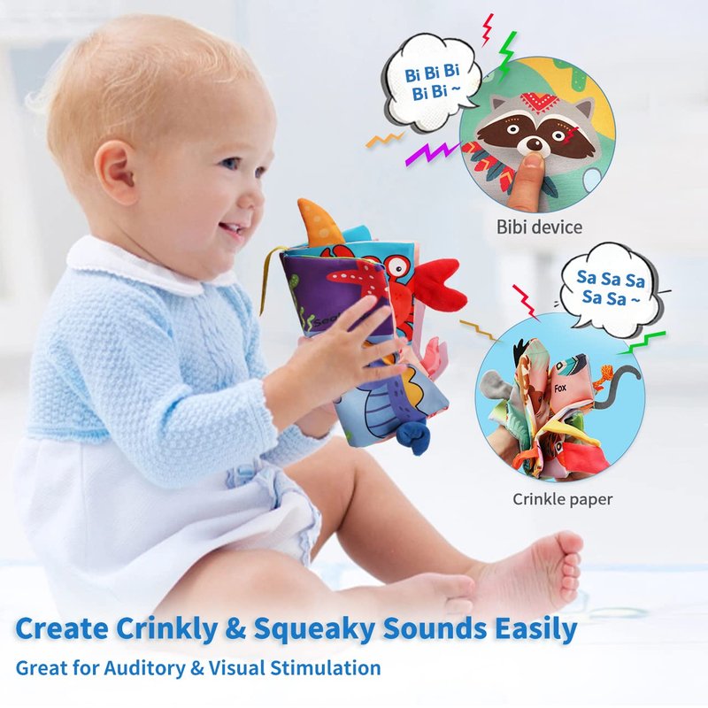 - 🐬【Rich Colors & Fun Sounds】The bright colors will catch the baby's attention, you can read these animal tail theme cloth books with your baby. The crinkle feature on every page and BB device promote your baby's vision development and auditory stimulation. Help babies engage for endless hours of fun!