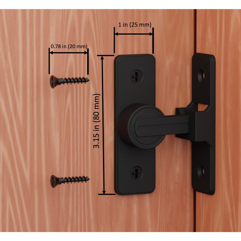 - Easy Installation: Our shed door latch comes with 4 stainless steel screws and can be easily installed as any other door lock. It can be installed in 2 directions depending on the door or preference and the 90-degree lock mechanism is mostly suitable for single doors.