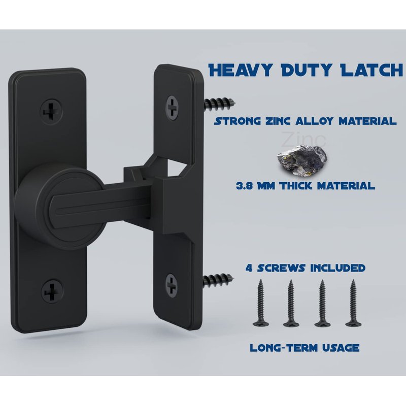 - Easy Lock Operation: The barn door latch is designed with 90-degree rotating latch that locks the door without the possibility to be levered from the other side. This door lock can be easily installed on any door, including in the bathroom, bedroom, office, garage, cabinet, garden, barn, shed, or other rooms.