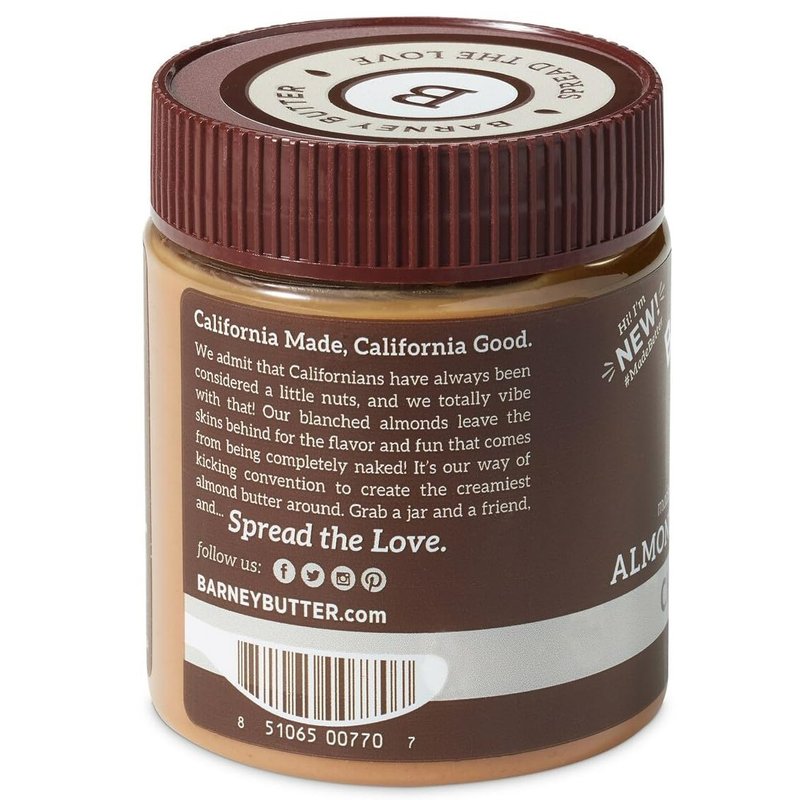 - SCRUMPTIOUSLY SMOOTH: Contains a 10-ounce jar of Barney Chocolate Almond Butter. Super-smooth and spreadable nut butter blended with melted 'Enjoy Life' chocolate. Delicious chocolate taste and only 3 grams of sugar per serving