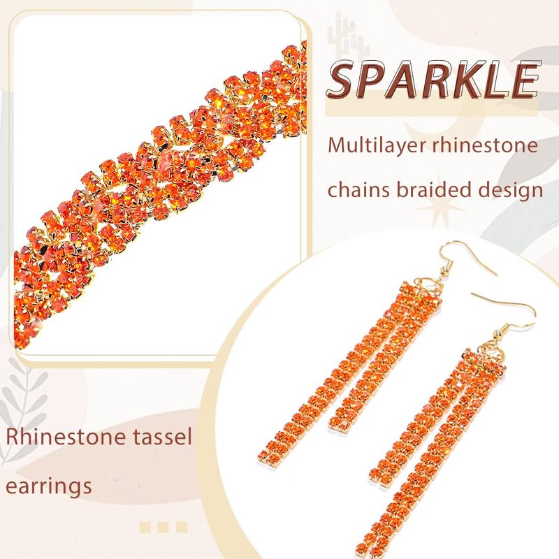 Barode Braided Rhinestones Headband Earrings Gold Crystal Hairbands Eardrop Sparkle Head Chain Tassel Jewelry Set for Women (Orange, Free Size)