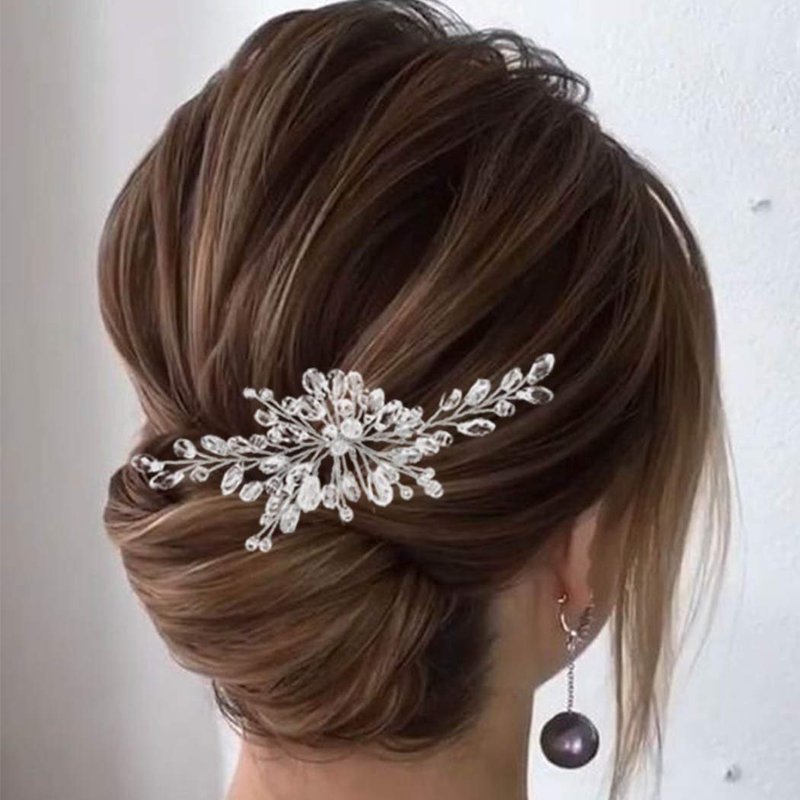 Barode Crystals Bridal Wedding Hair Pins Silver Sparkly Rhinestones Hairpin Bride Hair Accessories for Women and Girlss (Silver)
