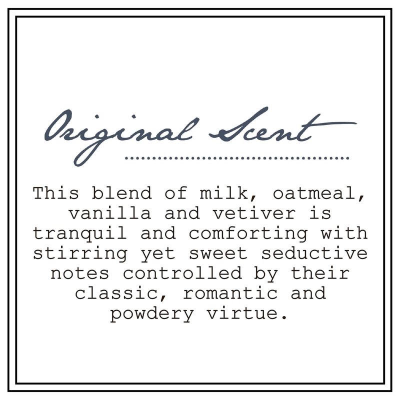 Dreamy smooth, this blend of milk, oatmeal, vanilla and vetiver is a tranquil, comforting scent with stirring, yet sweet seductive notes that are controlled by their classic, romantic and powdery virtue.