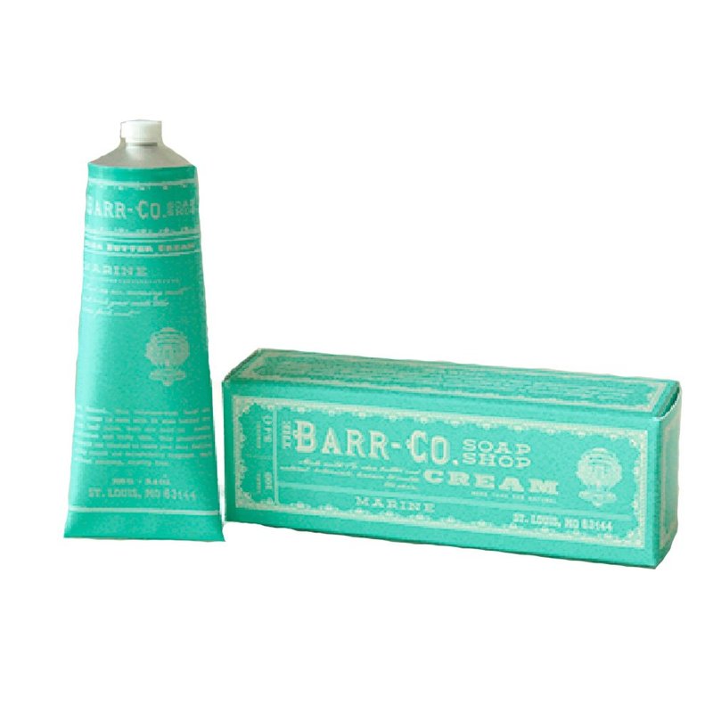 The Marine scent is evocative of fresh air and water, with layers of herbaceous flowers and morning mist. The hand cream is more than 98% natural and packaged in a beautiful gift box. Made with 5% shea butter and aloe leaf juice. The Barr-Co. Soap Shop hand and body cream will leave your skin feeling soft and fragrant. Great for keeping in your nightstand, purse or desk drawer to ensure you always keep your hands feeling great.
