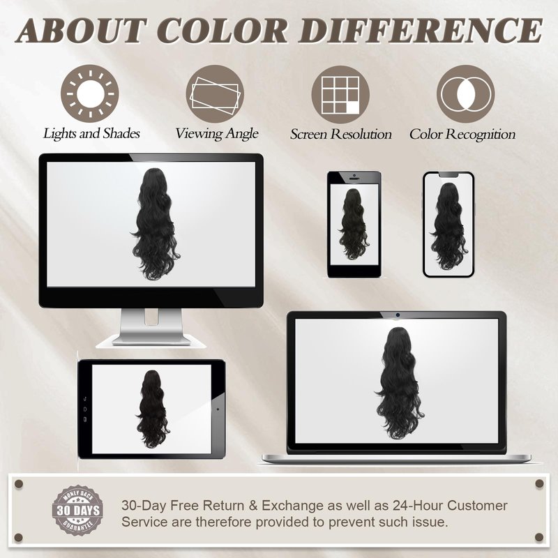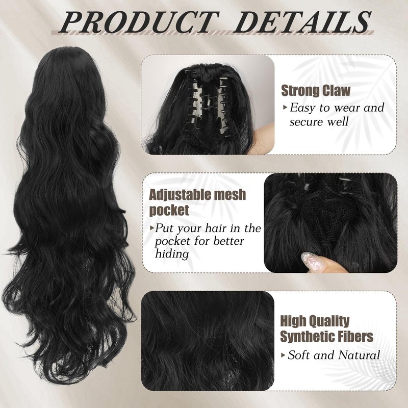 - ✿【Time-Saver & Beginner Friendly】The only thing that need to be done before wearing is to tie your own hair into a bun or a little ponytail.Then open the claw clip and secure the ponytail extension to your hair, an attractive long wavy ponytail hairstyle shows up instantly , perfect for switching up your hair-look in seconds.