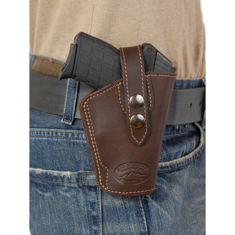 - Barsony Brown Leather Belt Clip Holster is compatible with gun make/model sizes listed in the drop down menu.
