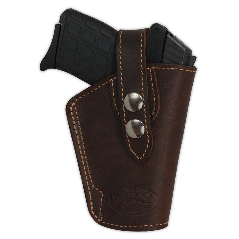 Premium Leather Outside the Waistband Belt Holster. Precision stitching, lightweight (only 4oz) and it is made in the USA. Made from premium cowhide leather. Wear it strong-side, cross draw or on the small of the back. Fits belts up to 1 3/4" wide.