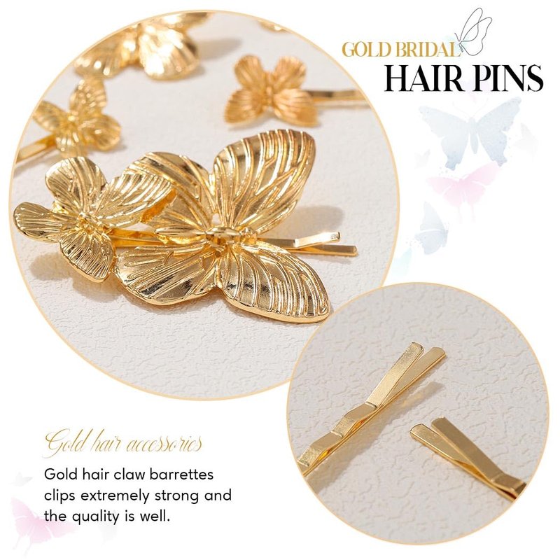 - Wedding hair accessories for brides are delicate and 5 pack gold butterfly hairpins for women and girls.