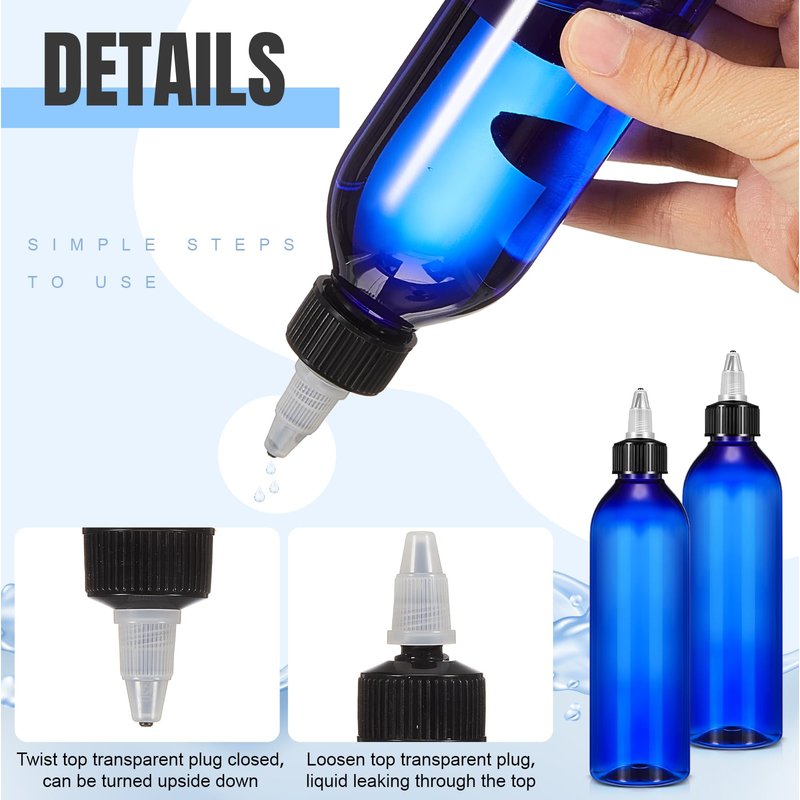 Barydat 12 Pcs Twist Top Applicator Bottle Refillable Squeeze Empty Plastic Bottles, Multi Purpose Round Hair Oil Applicator with Open Close Nozzle and 2 Funnels for Shampoo Lotion (Blue,8 oz)