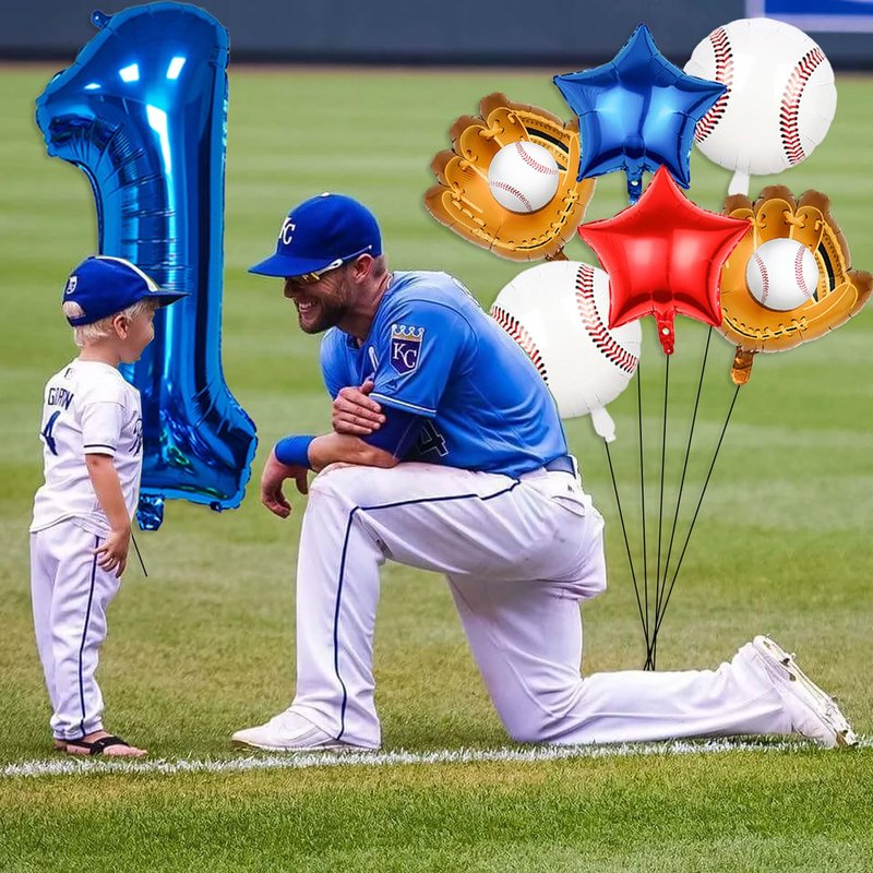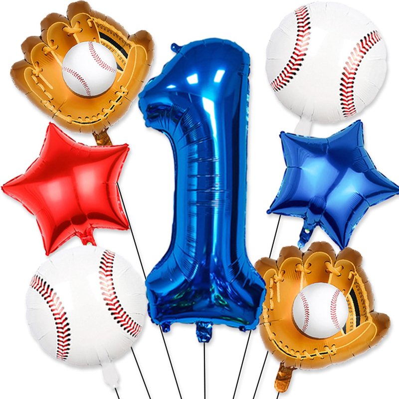 - 【Baseball party balloons】Baseball balloon number ballons set has 40 inch navy blue number 1 balloon x 1, 18inch foil baseball balloons x2,19.6*18.3inch baseball glove balloons x 2, 18inch star balloons (1 dark blue, 1 red),straw x 1, ribbon x 1.