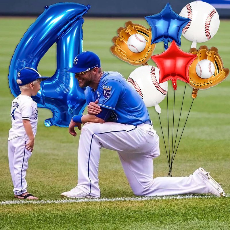 - 【Baseball party balloons】Baseball balloon number ballons set has 40 inch navy blue number 4 balloon x 1, 18inch foil baseball balloons x2,19.6*18.3inch baseball glove balloons x 2, 18inch star balloons (1 dark blue, 1 red),straw x 1, ribbon x 1.