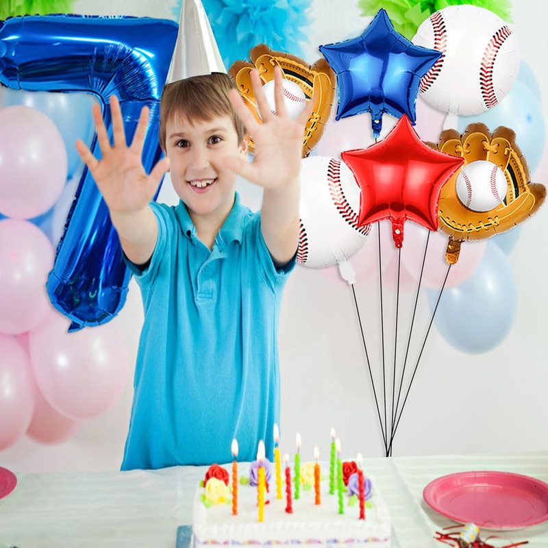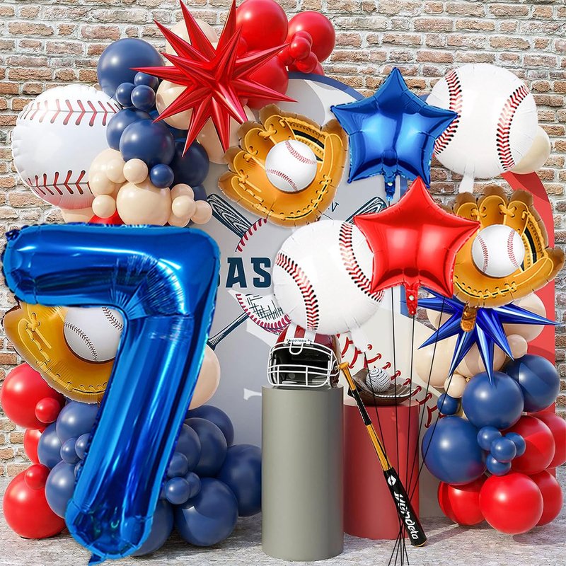 - 【Baseball Birthday Decorations】Baseball birthday balloon featured blue red white colors, with the 40inch blue 7 balloon, great combination of sports and birthday, fantastic baseball and softball birthday party supplies for boys and girls, The baseball party balloons set are perfect for baseball decorations for boys birthday party,baseball themed birthday party,sports themed birthday party,baseball balloon arch decoration,great to create a sports atmosphere for your birthday party.
