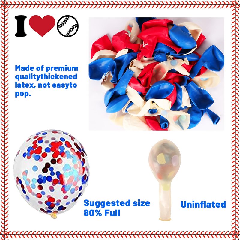 - Baseball Party Supplies:You'll get 1×banner,1×backdrop, 1×cake topper,24×cupcake toppers in various styles,10×plates,10×cups, 10×knives,10×forks,10×spoons,25×straws,20×napkins,1×tablecloth, 53×balloon garland kit, 12×balloons, 6×foil balloon,total 194 pcs.