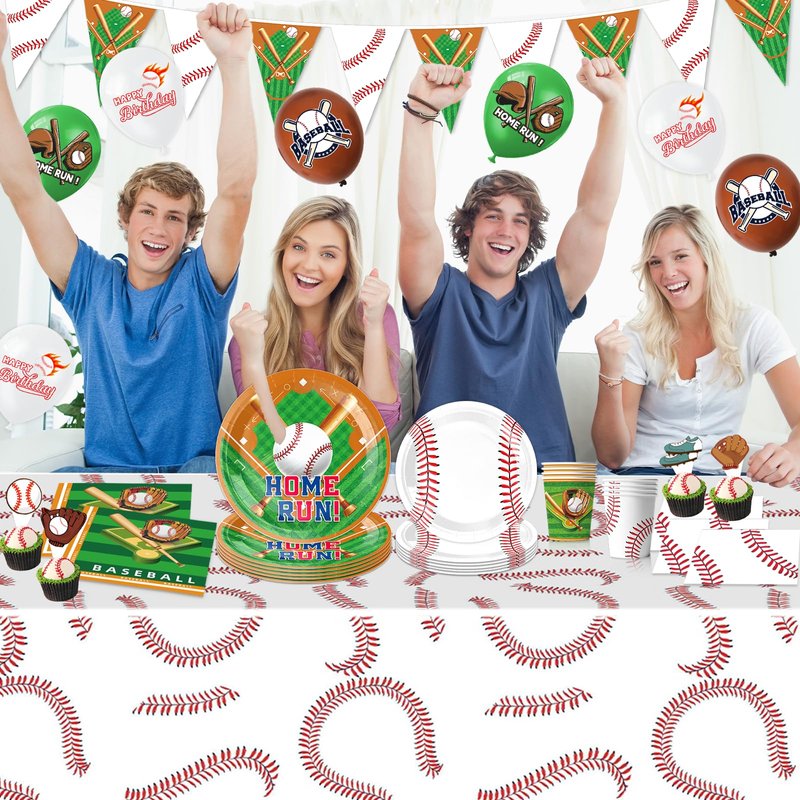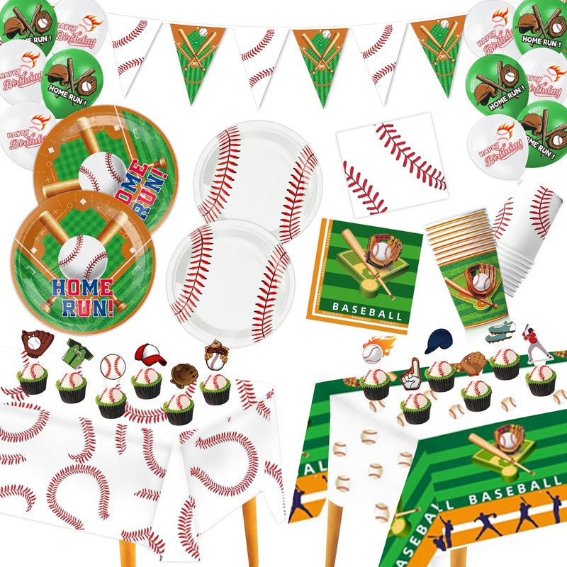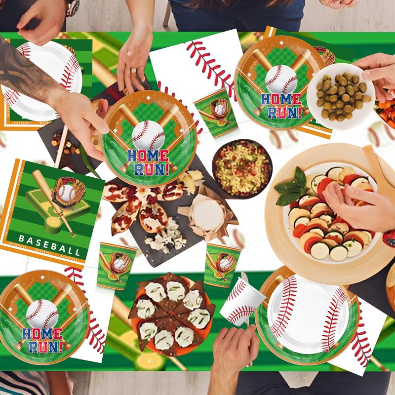 - ⚾Unique Design for Baseball Party Decorations:Baseball birthday decorations brings a unique sporty touch to your baseball party with its distinctive baseball element design. Baseball party plates are designed with fancy baseball and grass patterns with bright colors, and baseball napkins are printed with baseball gloves and other beautiful patterns, displaying a unique sense of baseball themed party decorations design, perfectly suited to the theme of the baseball party supplies.