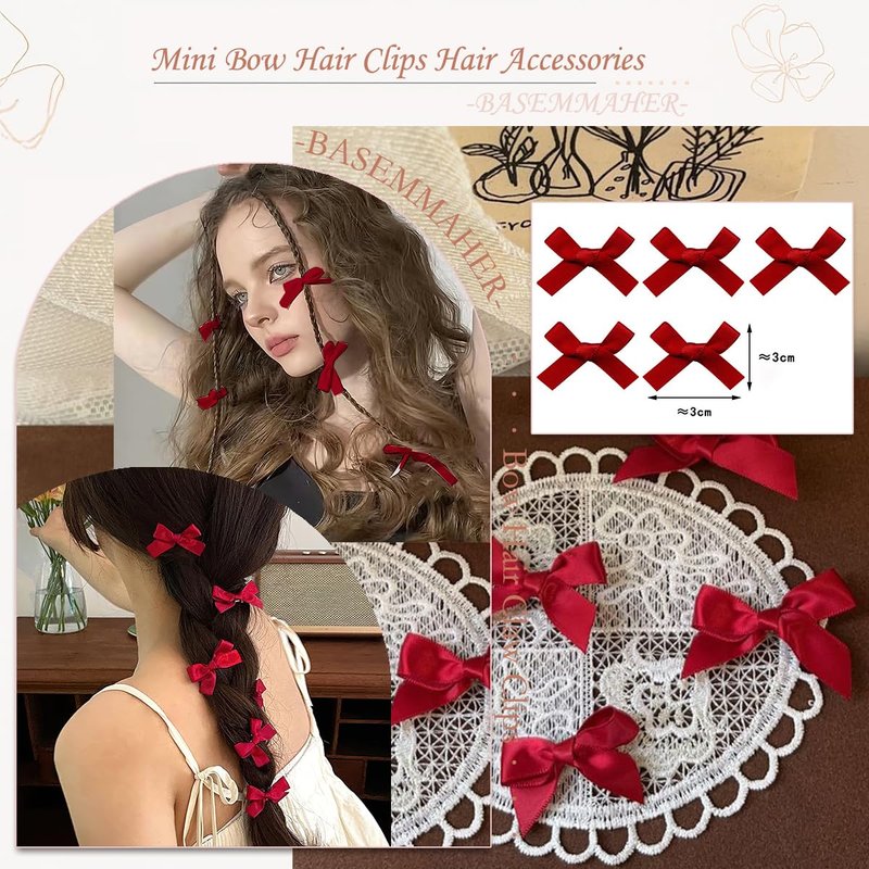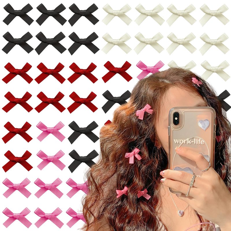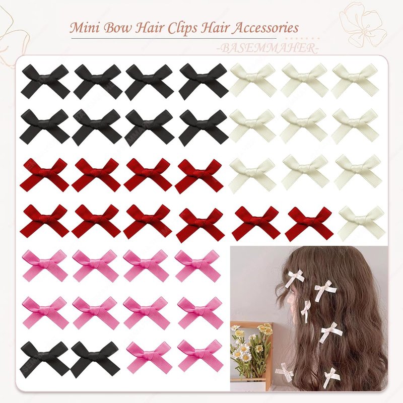 BASEMMAHER 40Pcs Mini Bow Hair Clips for Women Girls Cute Bowknot Ribbon Hairpins Alligator Clips Barrettes Cute Hair Braids Accessories for Thick Thin Wedding Birthday Party Hair Styling Accessories