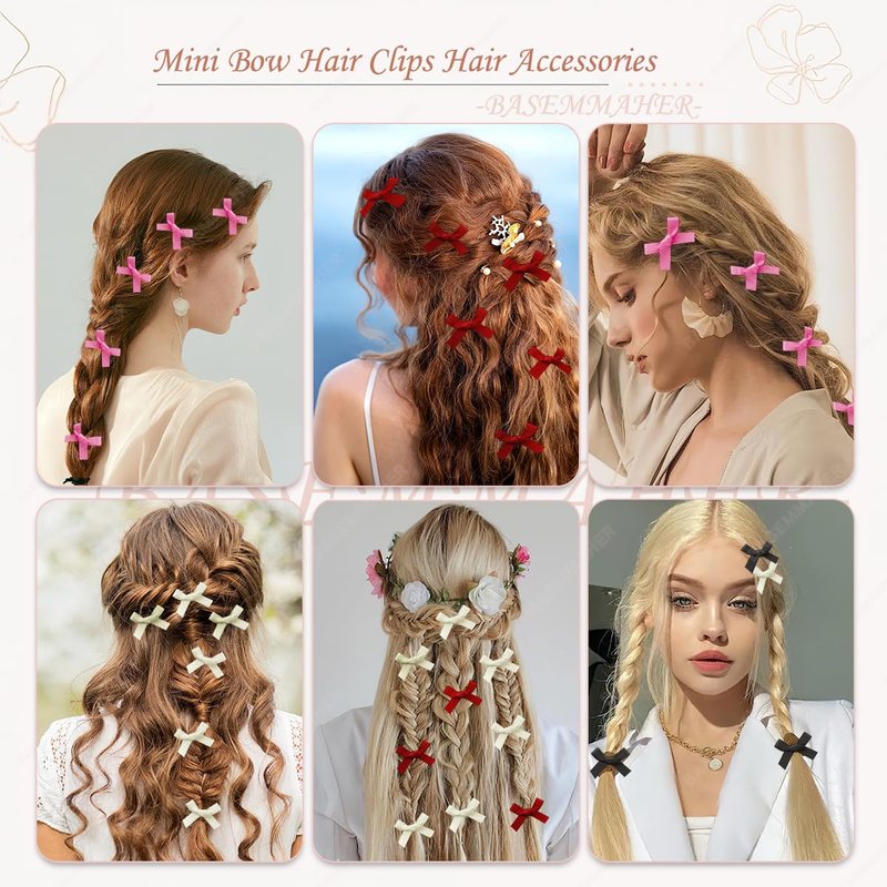 - 🎀【Widely Occasions】You can wear our colorful mini bow hair clips to all kinds of important occasions such as weddings, birthdays, parties, and dates. This women's hairpin is also an everyday fashion item to make your everyday look even more glamorous.